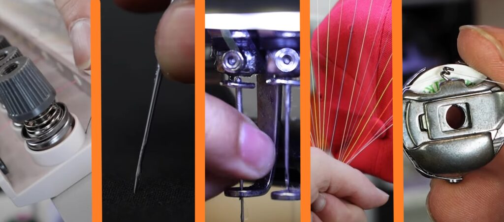 Поврежденные поверхности игольной пластины, челнока, шпульного колпачка, шпульки