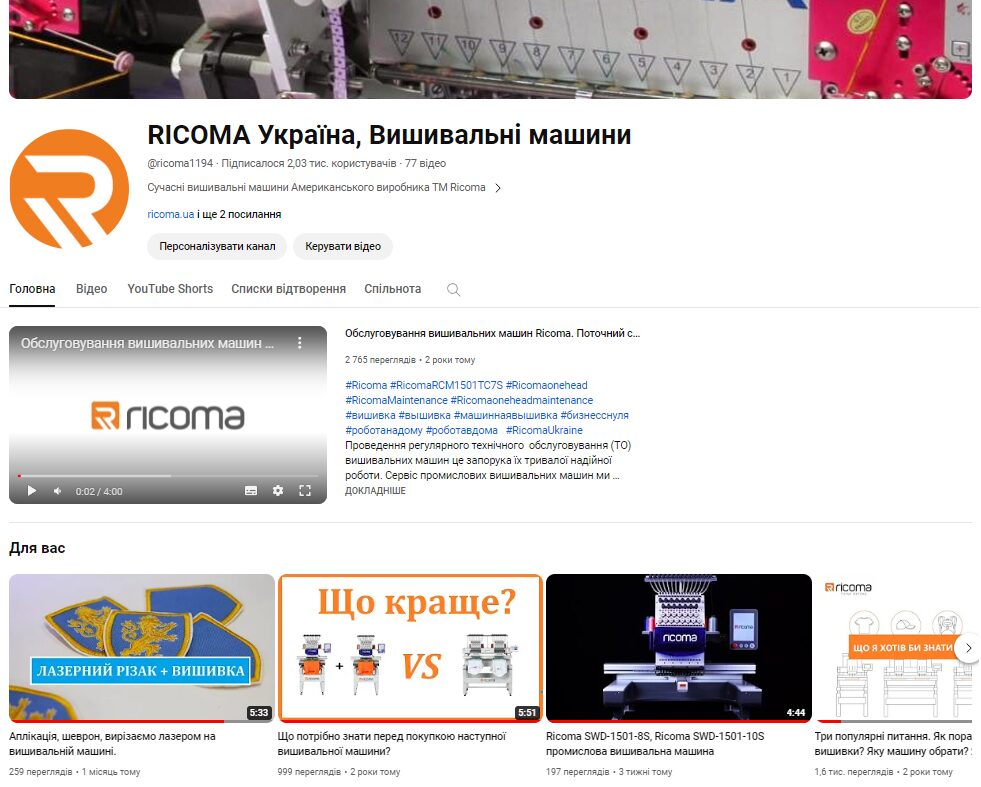 На канал «Ricoma Украина» в YouTube подписалось уже более 2000 пользователей.